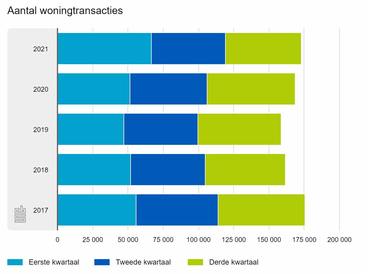Er wisselden in september 17.575 woningen van eigenaar, 15 procent minder dan in september vorig jaar. In de eerste negen maanden van dit jaar zijn 173.289 woningen gewisseld van eigenaar, bijna 3 procent meer dan in dezelfde periode van 2020