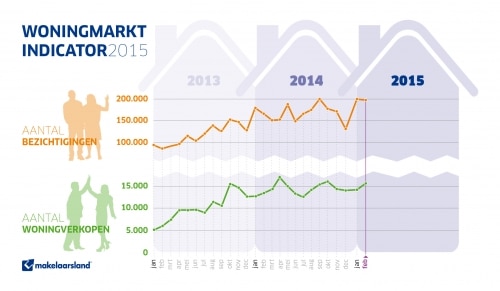 Makelaarsland brengt maandelijks het aantal bezichtigingen en verkochte woningen onder voorbehoud (van met name financiering) in beeld. Deze indicatoren bepalen samen de vraag naar particuliere woningen en transacties. Door de centrale registratie van bezichtigingen en verkochte woningen onder voorbehoud ontstaat een actueel beeld over de woningmarkt in Nederland. De indicatoren geven een minder betrouwbaar maar wel actueler beeld dan de kadastergegevens die de inschrijving van overgedragen woningen aangeven, aangezien die gegevens vanwege het financieringstraject pas 2,5 maand later beschikbaar zijn.