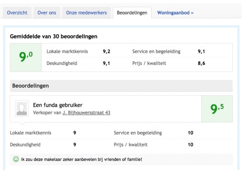 Met de makelaarsbeoordeling kan de makelaar de kwaliteit van zijn dienstverlening transparant maken, maar de waarde reikt verder dan het individuele niveau van de makelaar en consument, aldus Marc Duijndam, funda-CEO. Zo weten we uit de opgetelde scores dat consumenten service en begeleiding het belangrijkste vinden bij verkoop. Aan deskundigheid stellen ze de hoogste eisen bij aankoop. Nuttige informatie voor elke makelaar die op funda is aangesloten.