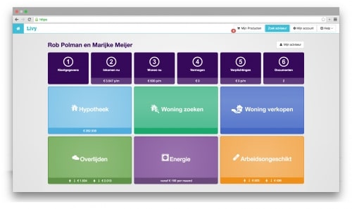 In het dossier kan de klant zelf aan de slag met zaken als het verkopen van de eigen woning, het zoeken en kopen van een woning, het vergelijken en afsluiten van hypotheken, verzekeringen en energieleveranciers. Daar waar hij kennis of vaardigheden mist, schakelt hij een expert in. Hierdoor wordt voor de klant snel duidelijk wat de toegevoegde waarde van de dienstverlening van de makelaar of financieel expert is.