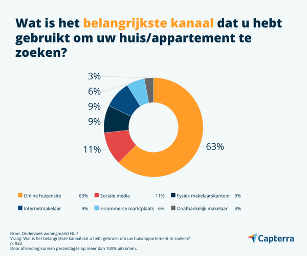 Het onderzoek van Capterra werd in februari gehouden onder 933 Nederlanders; 552 kopers en 381 huurders. Als het gaat om afbeeldingen geeft 91% aan hier vooral naar te kijken, gevolgd door beschrijvingen (77%) en plattegronden (64%). Daarna kijken ze naar video’s (26%), virtuele rondleidingen (25%) en kaarten (16%).