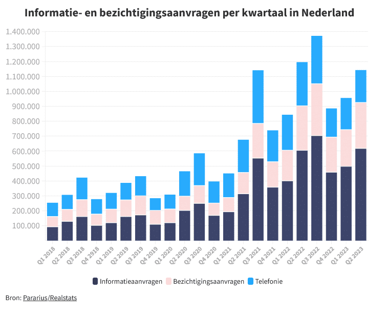 In het tweede kwartaal werd er verreweg het meest gereageerd op kleine woningen via Pararius. Het afgelopen kwartaal kwamen er gemiddeld 42 reacties binnen op een nieuw aangeboden woning van minder dan 75 m2, in hetzelfde kwartaal van 2021 waren dat er slechts 9. Naarmate een woning groter is – en hierdoor veelal ook in een hogere prijsklasse valt – daalt het gemiddeld aantal reacties. Maar voor elk oppervlaktesegment geldt dat over de afgelopen drie jaar de vraag vanuit de markt significant is toegenomen.