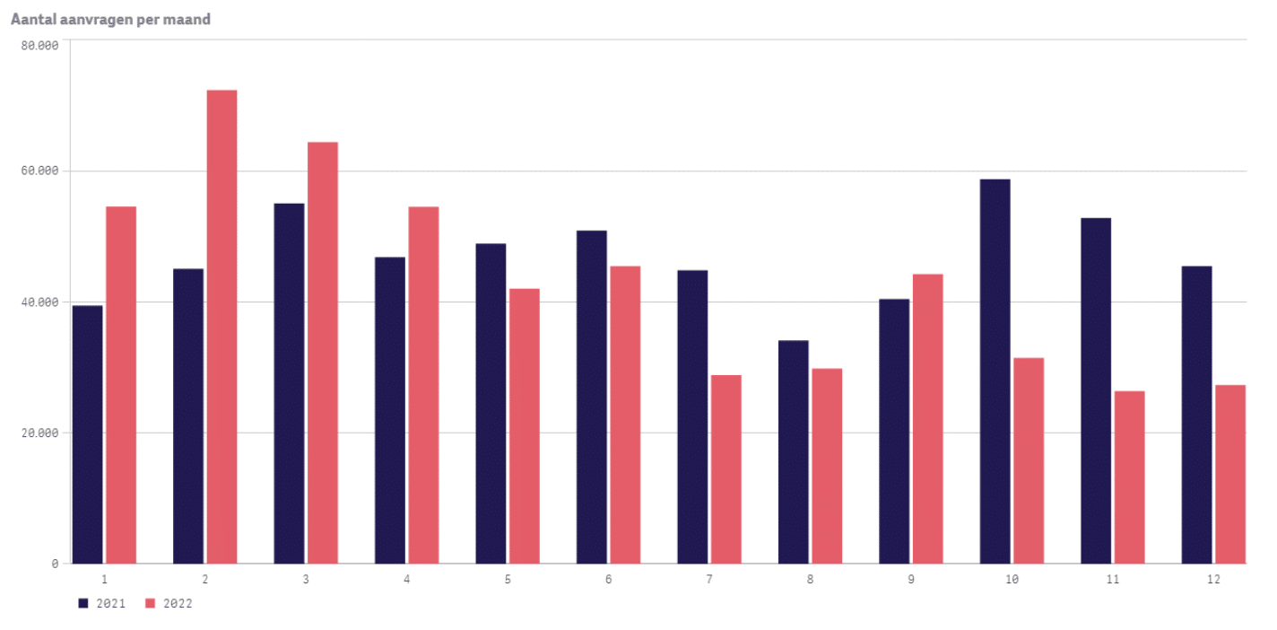 HDN registreerde vorig jaar 521.433 aanvragen voor een hypotheek, tegenover 562.655 in 2021. Oversluiters pakten in het eerste kwartaal van 2022 nog hun kans, maar de stijgende rente had vanaf het tweede kwartaal een remmend effect. De niet-kopersmarkt liet een aanzienlijke krimp van -11% zien van 297.200 aanvragen in 2021 naar 264.470 in 2022. In de kopersmarkt bleef de krimp beperkt tot 3%, ondanks de scherpe daling van het aantal aanvragen voor het kopen van een woning van ruim 20% in het laatste kwartaal van het jaar.