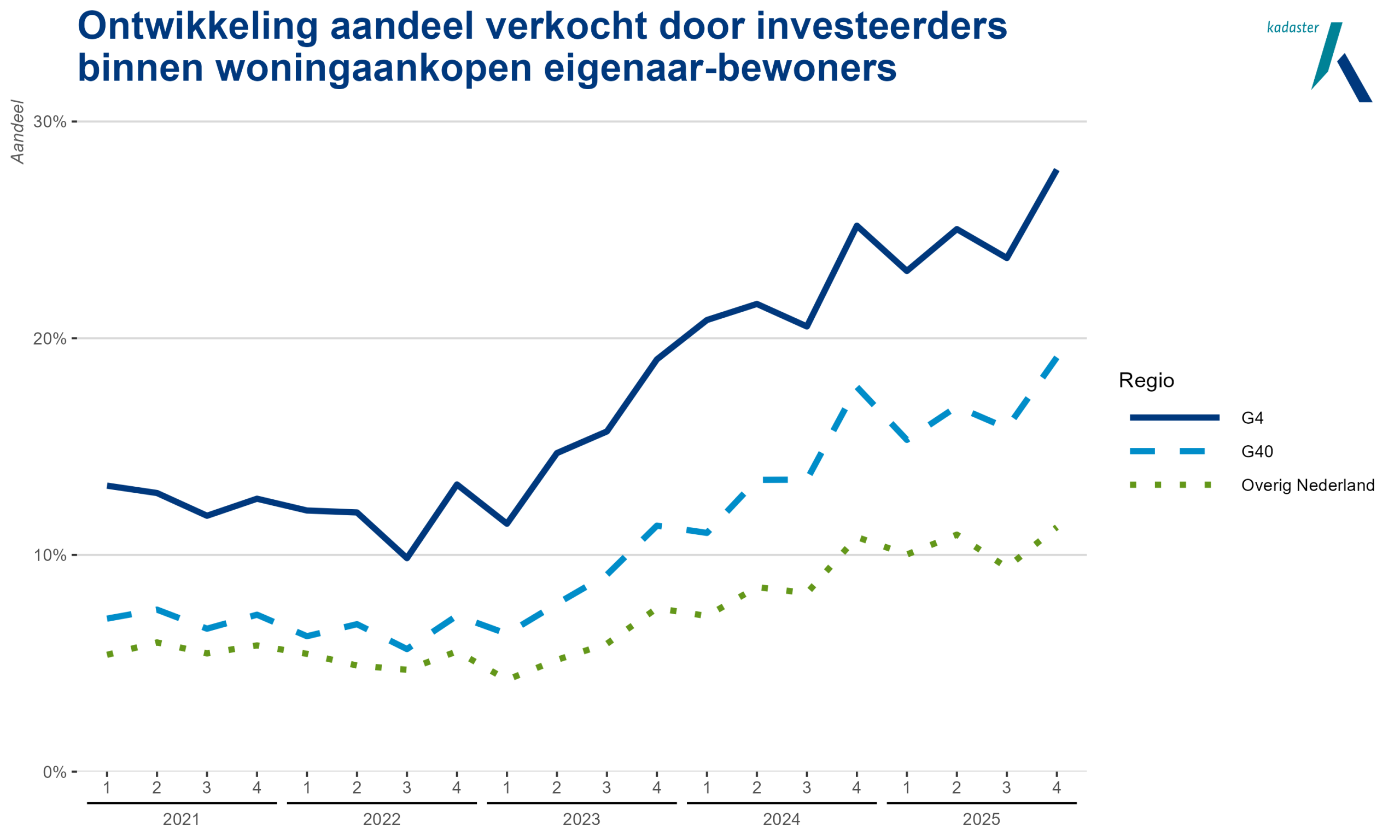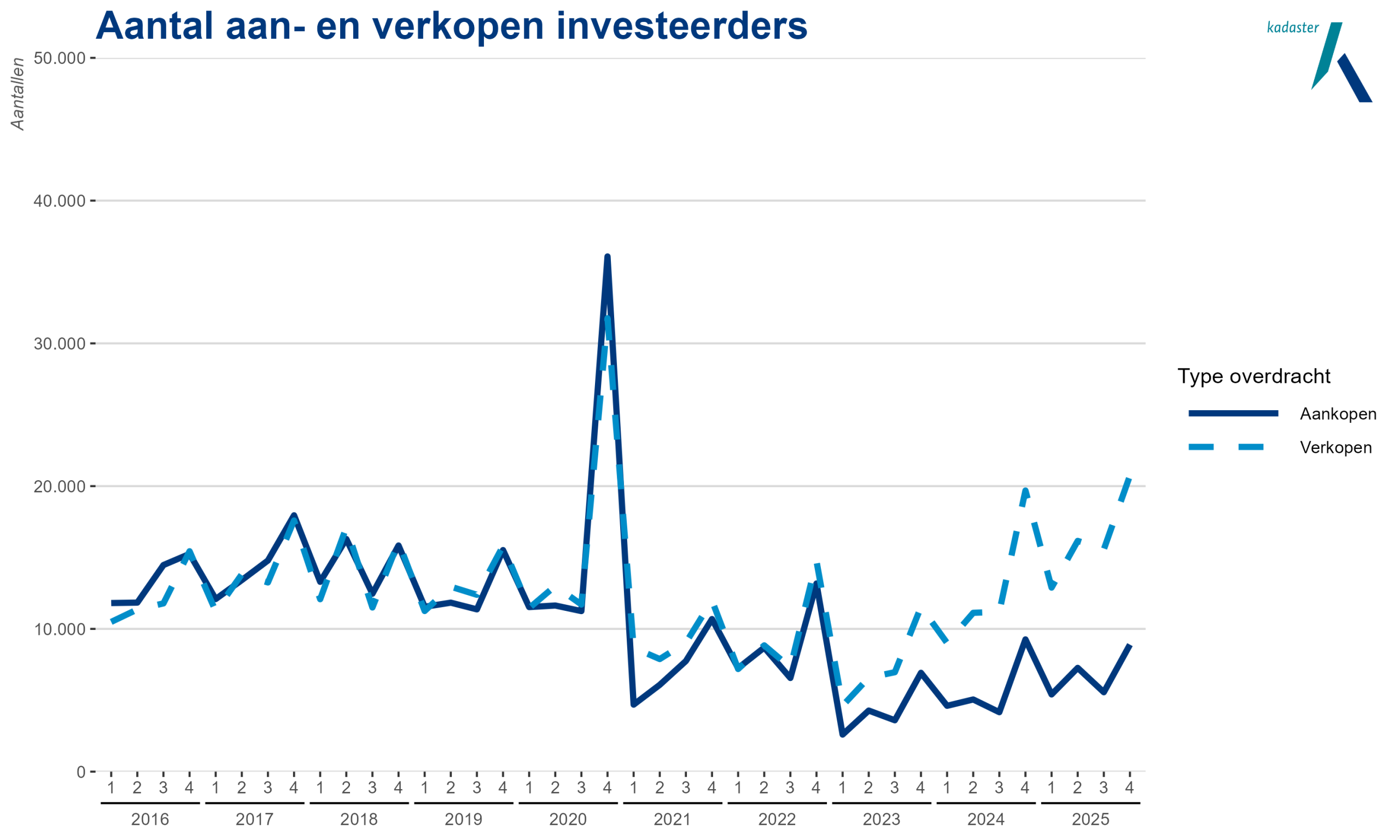 In 2025 verkochten investeerders elk kwartaal ongeveer 7.800 woningen aan eigenaar-bewoners. Ongeveer 60% daarvan was van particuliere investeerders en de andere 40% van berijfsmatige investeerders.