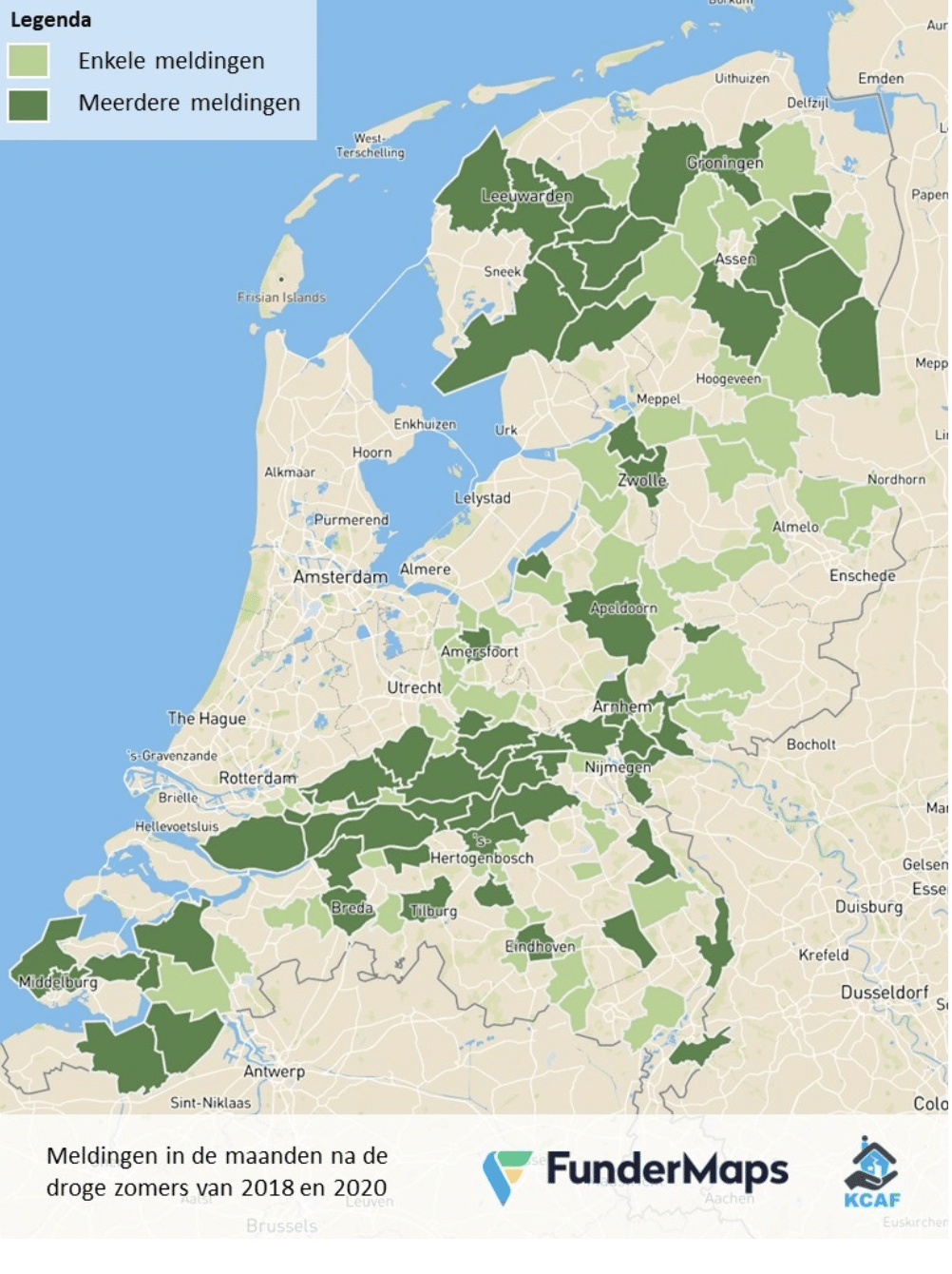 De situatie is vergelijkbaar met die in 2018, toen er eveneens een warme zomer was met nauwelijks regen. De daling van de grondwaterstand die toen is ingezet gaat verder. In de onderstaande afbeelding is te zien waar het aantal meldingen van schade aan woningen door droogte in Nederland na 2018 is toegenomen.