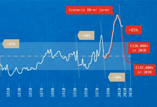 Huizen zijn in de afgelopen 4 eeuwen nog nooit zo duur geweest als nu. Anno 2015 zijn woningen nog steeds 100 procent duurder dan het historische gemiddelde. Dat is zeer uitzonderlijk. De geschiedenis leert dat na dergelijke uitzondering altijd een correctie, ofwel herstel naar het gemiddelde volgt, aldus WoningmarktNL. De website publiceerde een verontrustende infographic gemaakt door Bubbelonia over 400 jaar huizenprijzen. Blazen we onbewust een huizenbubble lucht in, die onherroepelijk zal barsten?