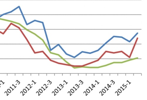 De eerste zes maanden van 2015 laat een stijging van de gemiddelde koopsom zien van 2,9%. In vergelijking met het gehele jaar 2014 blijft de stijging beperkt tot 1,1%. Bij de prijsontwikkeling per kwartaal zijn de verschillen van de diverse prijsindexen goed zichtbaar. De NVM mediaan prijs ligt structureel ca. € 10.000 onder het niveau van de kadasterkoopsom, maar het verschil loopt het laatste kwartaal terug. De NVM prijzen hebben ongeveer een kwartaal voorsprong op de kadastercijfers en vormen daardoor een goede indicatie van de gemiddelde koopsom van het Kadaster voor het derde kwartaal. De Prijsindex Bestaande Koopswoningen van het CBS en Kadaster blijven zoals gebruikelijk ver achter op de koopsomontwikkeling absoluut.